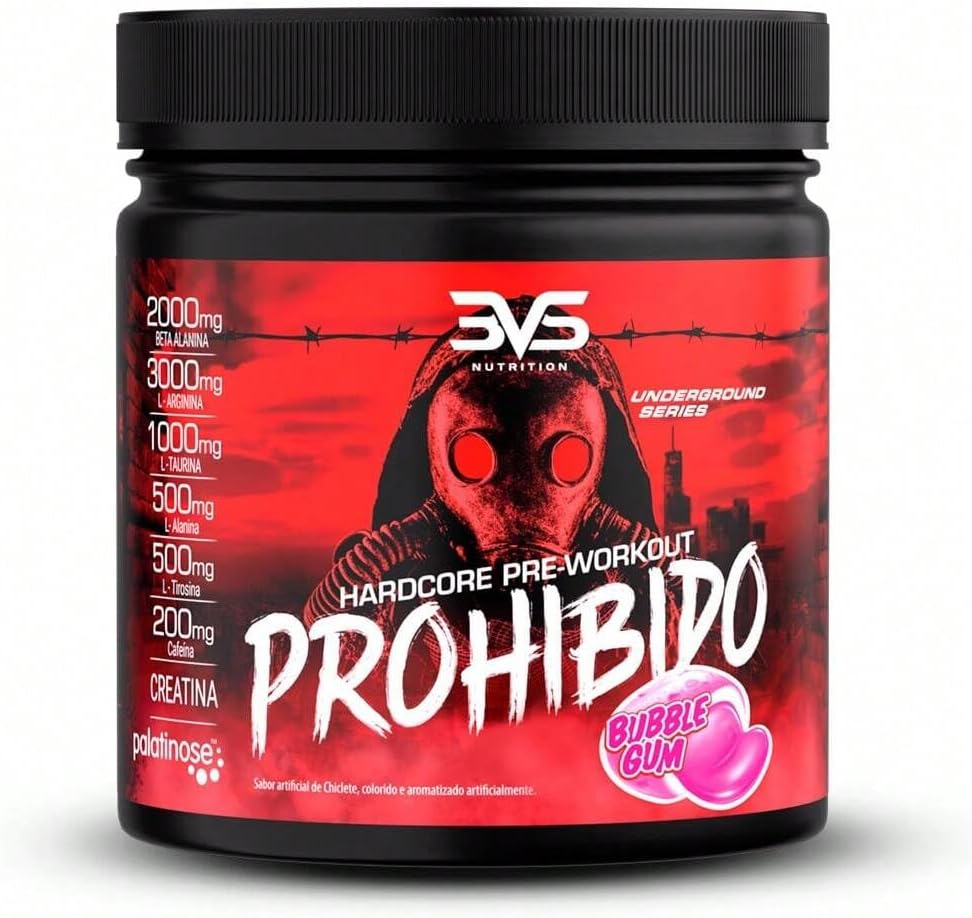 Acorde sua energia e domine seus treinos com o Pré-Treino Prohibido da 3VS Nutrition! Com sabor chiclete divertido e fórmula potente, ele é feito para quem busca foco, explosão de energia e resistência máxima durante a atividade física. Perfeito para aumentar sua performance desde o primeiro minuto, esse pré-treino ajuda você a treinar mais intenso, manter a concentração e dar aquele extra que faltava para superar seus limites.